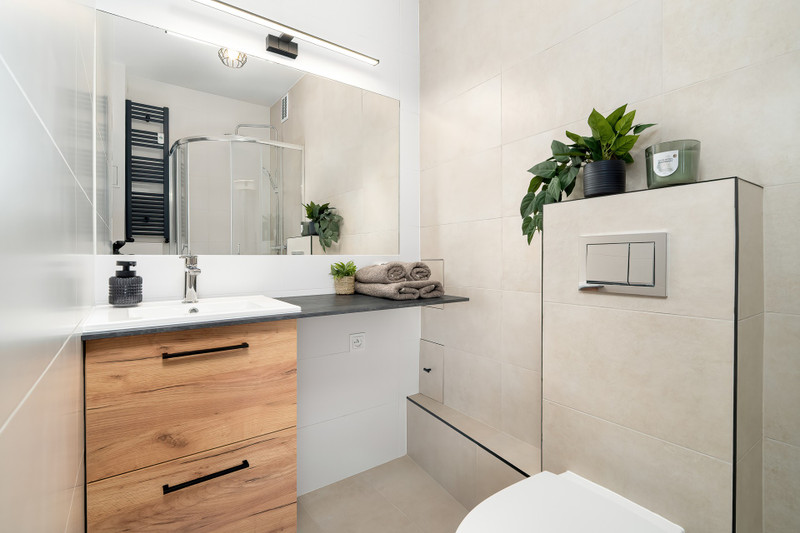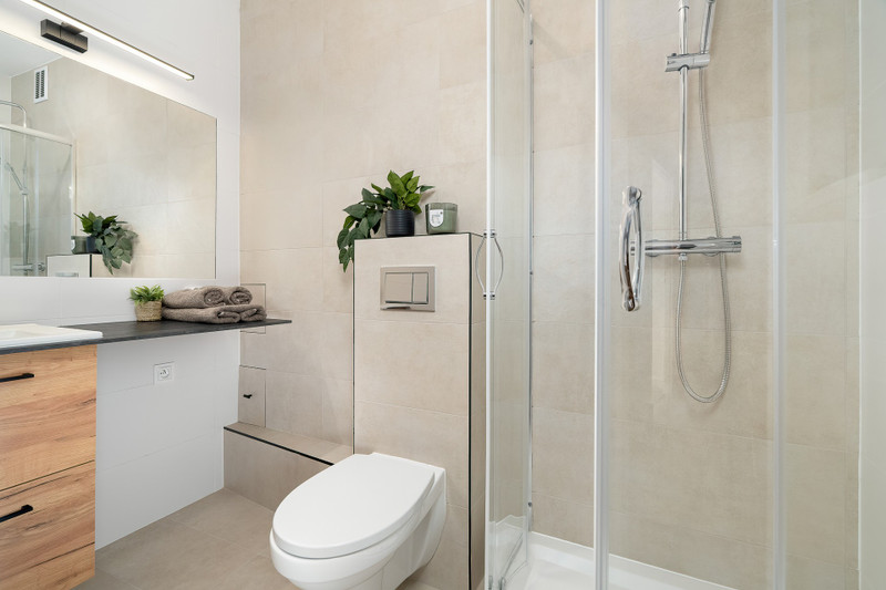 • Wykończenie: Gładzie, neutralne kolory, panele o wysokiej klasie ścieralności (wodoodporne).