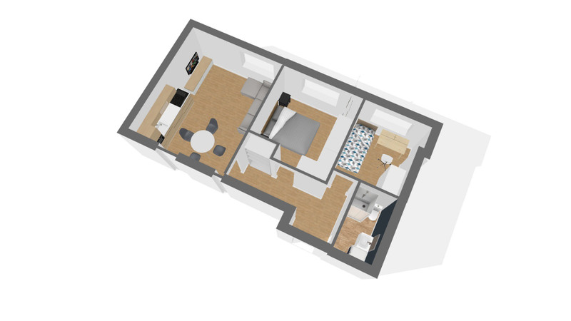 • Kuchnia i Łazienka: Nowa zabudowa kuchenna, łazienka w pełni wyposażona w nowoczesnym standardzie.