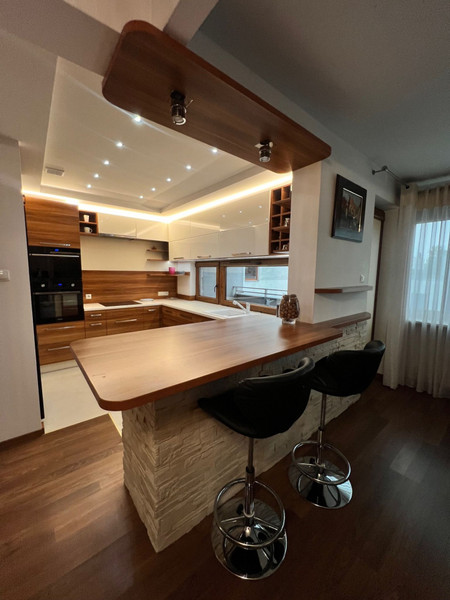 - fully equipped, nothing is missing. There is: dishwasher (Bosch), fridge with freezer (Samsung), induction hob (Bosch), microwave (Samsung), oven (Samsung), washing machine (Haier), kettle (Bosch), steamer (Philips), LCD TV 3D 45 "(LG), 5 + 1 home cinema (Sony), speakers (Jamo), LCD TV 47" (Samsung), vacuum cleaner (Karcher), iron (Philips) and ironing board. The flat is fully furnished.
