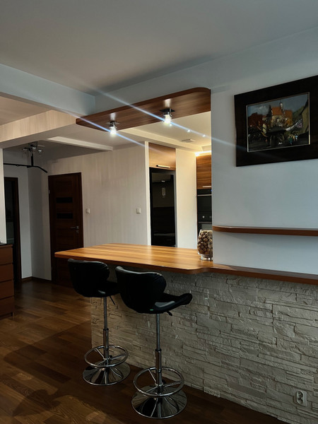 The apartment with an area over 63 m2 consists of a very large living room combined with a beautiful kitchen, separate bedroom, bathroom and corridor. The apartment has a balcony with a view of the closed courtyard. The flat was designed by an interior designer. All furniture has been made to order.