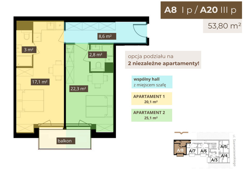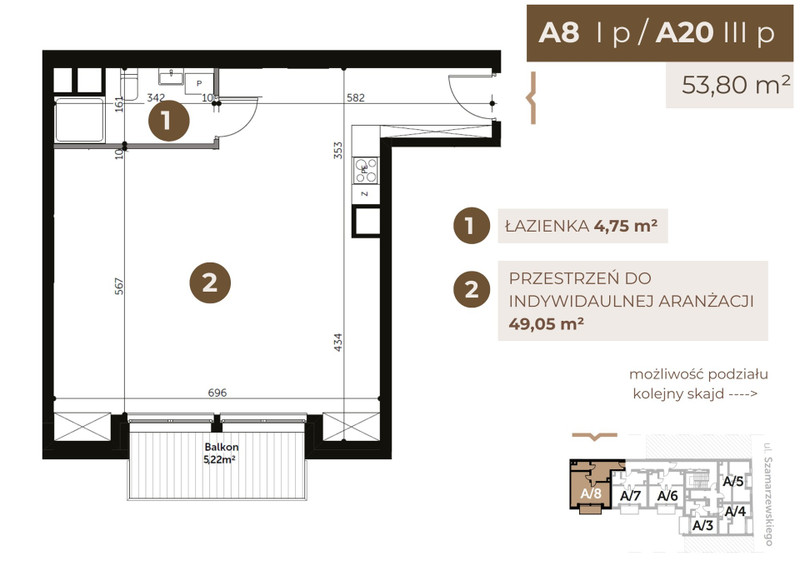 Metraż: 53,80 m² | Piętro: 1/4