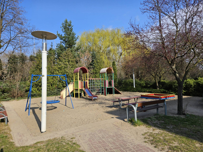 Budynek 3 piętrowy w kształcie podkowy, pośrodku wspólny ogródek ,-wspaniale miejsce dla małych dzieci. Z ogródka winda na ulicę. Strona balkonowa okna od południa, 3 pokoje płd/zachód. Na osiedlu jest ochrona.