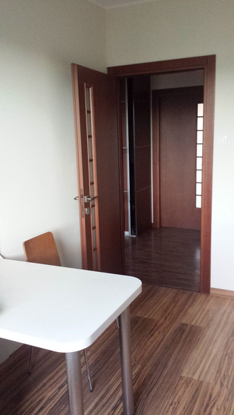 W przedpokoju zamontowano szafę typu komandor. Okna PCV. Wystawa okien: duży pokój z balkonem - południe, mały pokój i kuchnia - północ. Ogrzewanie miejskie. Balkon o powierzchni 8 m2. Warunki pozwalają na podział dużego pokoju na dwa mniejsze oraz na wydzielenie dodatkowej toalety.