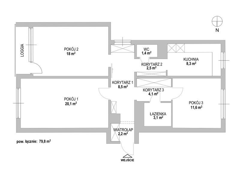 • korytarz 3 – 4,1 m²