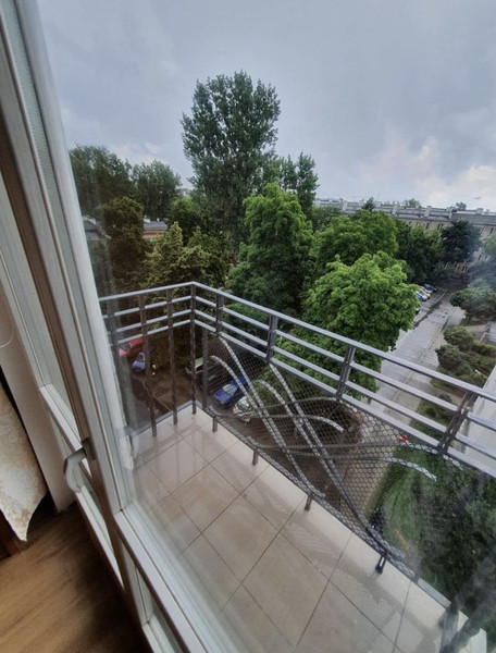 • balkonu z widokiem na ciche, zielone podwórko.