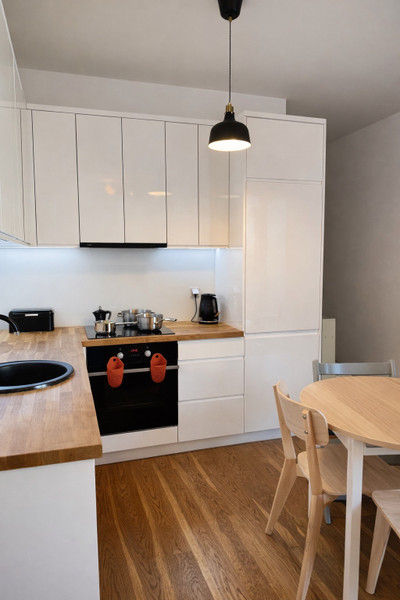 The immediate neighborhood offers shops, cafés, restaurants, gyms, schools, and various service points.