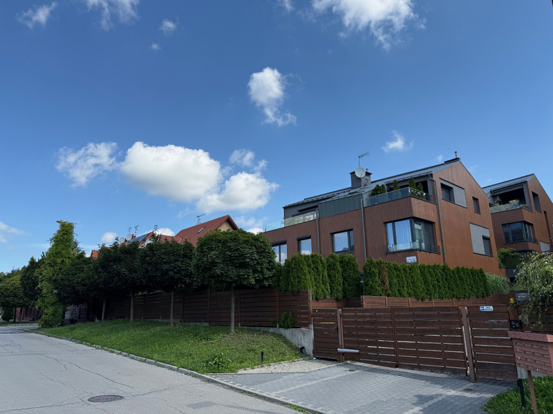 Dwupoziomowy, nowoczesny apartament z dużym tarasem widokowym i ogródkiem z pergolą oraz antresolą na górnym poziomie, otulony z jednej strony Parkiem Leśnym Witkowice, a z drugiej polami witkowickimi w Dolinie Prądnika Białego w pobliżu rzeki Biełucha.