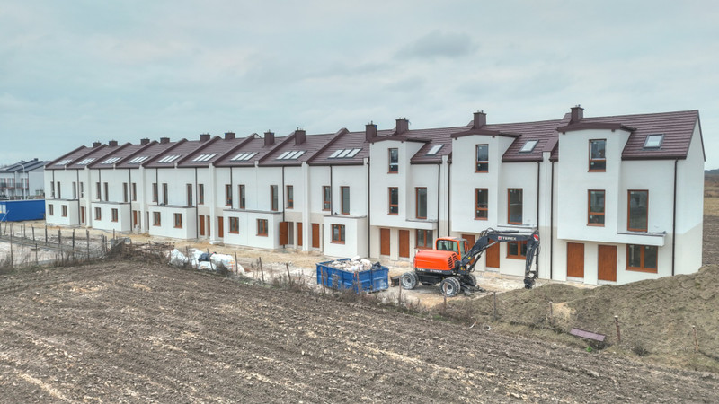 Budynki posadowiono na płycie fundamentowej. Zwiększa to trwałość konstrukcji i ogranicza ryzyko powstawania rys, które dość często pojawiają się przy standardowych fundamentach. Dzięki temu budynki są lepiej docieplone.