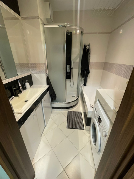 Wyposażenie (sprzęt AGD(lodówka, kuchnia indukcyjna z piekarnikiem, zmywarka, pralka) i RTV(2x TV salon i kuchnia), klimatyzacja, żaluzje bambusowe) oraz meble. Koszt czynszu do wspólnoty przy 4 osobach ok 1050pln.