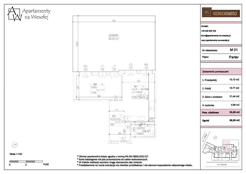 - powierzchnia mieszkania: 52,30 m²