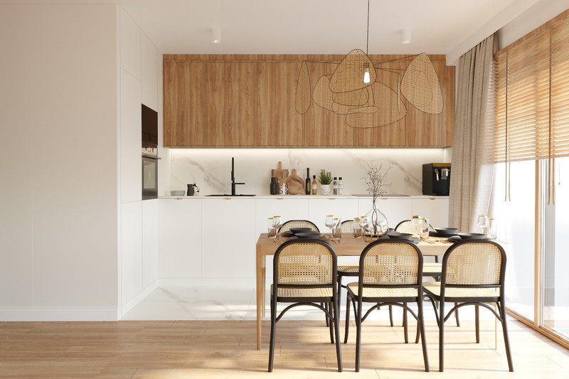 Materiały użyte do wykończenia wysokiej jakości w tym m.in. lite drewniane podlogi, armatura Grohe, sprzęt AGD Samsung, Liebherr, Whirlpool. Kuchnia i wszystkie inne zabudowy meblowe wykonane na wymiar niemieckiej firmy Nobilia.