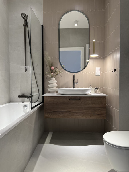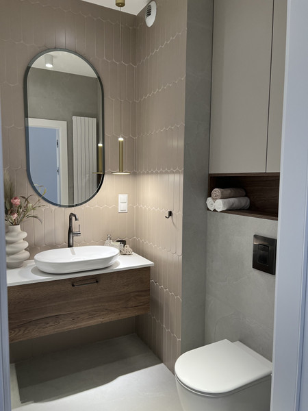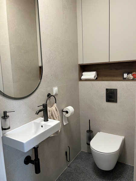 W związku z zakończeniem prac w łazienkach dodałem aktualne zdjęcia łazienek, które można porównać z wizualizacjami i ocenić finalny efekt w stosunku do planowanego.