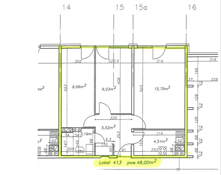Powierzchnia całkowita: 48,0 m² | Piętro: 4 / 15 | Liczba pokoi: 3 | Oddzielna kuchnia (z możliwością otwarcia na salon) | Balkony francuskie | Ekspozycja okien: zachodnia (jasne, słoneczne wnętrza) | Spółdzielczo-własnościowe |