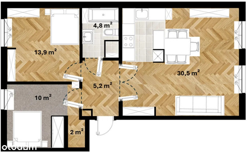 • Salon z aneksem kuchennym: 30,5 m2 ( umeblowany)