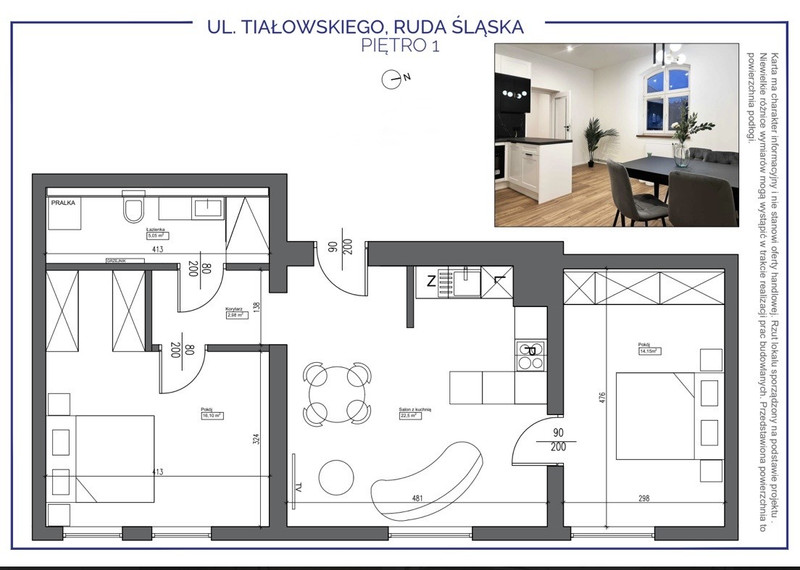 Na sprzedaż oferuję częściowo wyposażone mieszkanie na I piętrze w piętrowym budynku przy ulicy Tiałowskiego 4 w Rudzie Śląskiej, dzielnica Ruda.