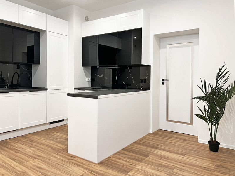 • nową zabudowę w aneksie kuchennym wraz ze sprzętami AGD na gwaranacji (płyta indukcyjna, piekarnik, zmywarka, lodówka i zamrażarka),