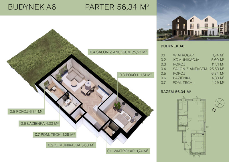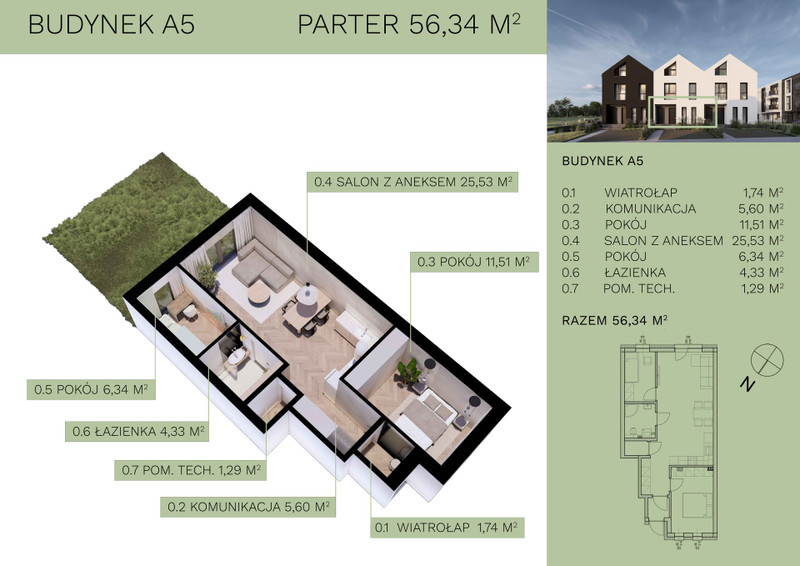 Oferta skierowana dla osób szukających mieszkania w kameralnym kompleksie z oryginalnym designem i nowoczesną architekturą. Osiedle zlokalizowane przy ul Św. Rocha 159a w Rzeszowie charakteryzuje się nie tylko wyjątkowym wyglądem, ale także praktycznością i wygodą oferowanych przestrzeni mieszkalnych. Priorytetem było dla nas stworzenie projektu funkcjonalnego i zapewniającego przyszłym mieszkańcom maksymalny komfort użytkowania. Charakterystyczną cechą mieszkań jest przestronna część dzienna z dużymi, nowoczesnymi oknami. Standardem jest ogrzewanie podłogowe oraz instalacja klimatyzacji. Każde mieszkanie dysponuje balkonem lub ogródkiem, co jest dużym walorem dla osób ceniących bliskość natury i prywatną przestrzeń na świeżym powietrzu. Dla entuzjastów aktywnego spędzania czasu, bezpośrednio przy osiedlu znajduje się szlak turystyczny prowadzący do kompleksu leśnego przy ul. Św. Marcina z licznymi ścieżkami umożliwiającymi rekreację na świeżym powietrzu. W odległości jednego kilometra od osiedla znajduje się Szkoła Podstawowa nr 5, w pobliżu usytuowane są również przedszkola, żłobek, sklep spożywczy, przystanek komunikacji miejskiej. Oferowane lokale mieszkalne wyróżniają się wyjątkowym komfortem akustycznym ze względu na zastosowanie podwójnych wygłuszonych niezależnych ścian nośnych o łącznej grubości 50 cm oddzielających od siebie każde z mieszkań. Zaprezentowany lokal mieszkalny o powierzchni 56,37 m² posiada trzy pokoje, aneks kuchenny, łazienkę, pomieszczenie gospodarcze, ogródek 48 m². Każde mieszkanie wyposażone jest w dwa indywidualne miejsca postojowe dla samochodów. Cena dotyczy wykończonego mieszkania do stanu deweloperskiego z miejscami postojowymi, ogródkiem i udziałem w drodze dojazdowej. Nie ma innych dodatkowych dopłat poza kosztami notarialnymi.