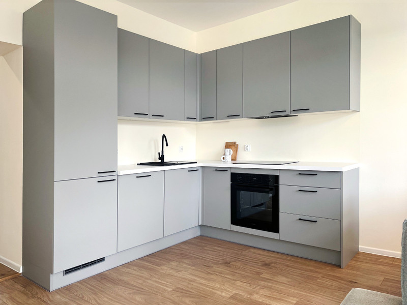 • nową zabudowę w aneksie kuchennym wraz ze sprzętami AGD na gwaranacji (płyta indukcyjna, piekarnik, zmywarka, lodówka i zamrażarka),