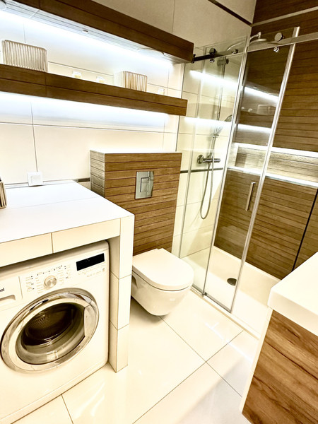 Mieszkanie zostało całkowicie odnowione i wykończone w wysokim standardzie, nie wymaga żadnych nakładów — idealne do wprowadzenia od zaraz.