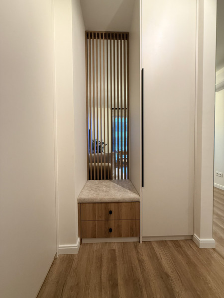 Sprzęt AGD i elektronika b. wysokiej klasy. Meble na wymiar zapewniają maksymalną powierzchnię do przechowywania.