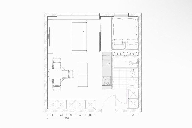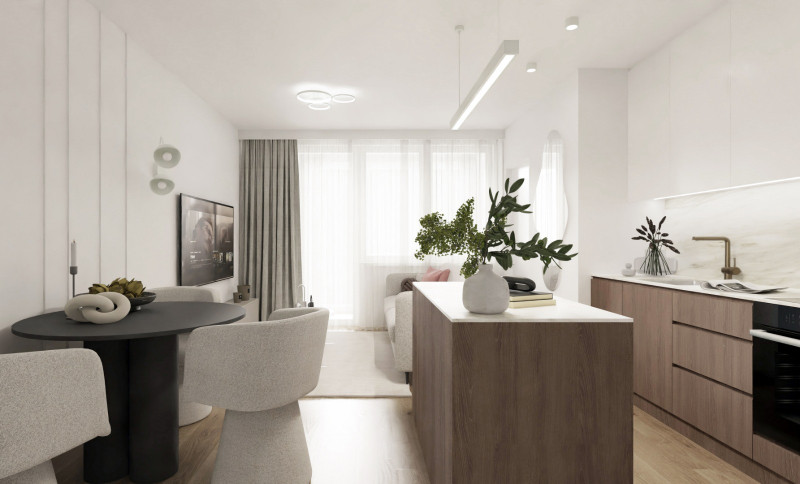 • 2 pokoje - salon z aneksem kuchennym + sypialnia lub gabinet