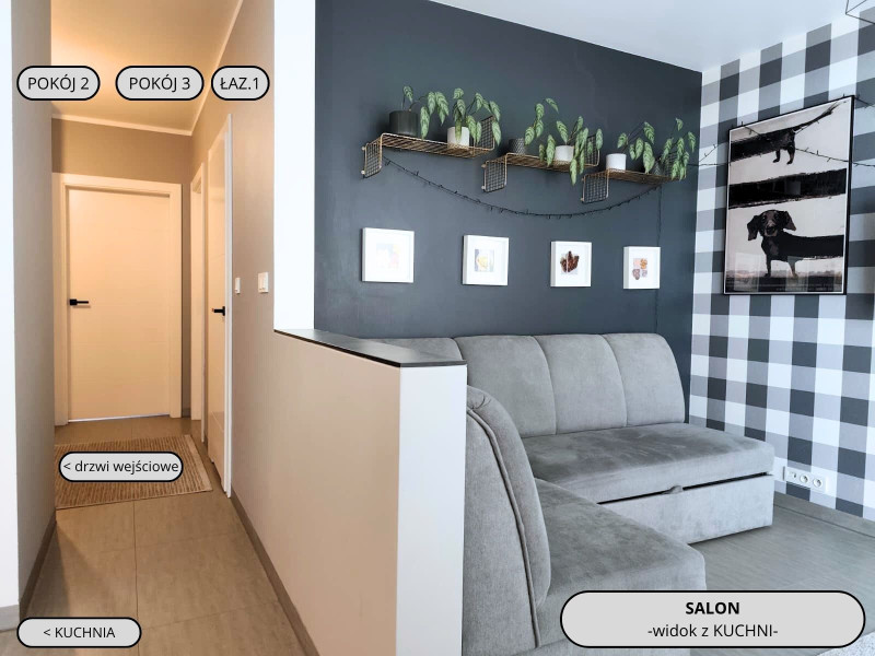 • Solidny standard wykończenia – zabudowa w kuchni, łazience i przedpokoju, na podłodze panele winylowe wysokiej jakości, drzwi jednolite białe