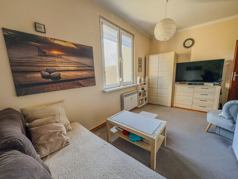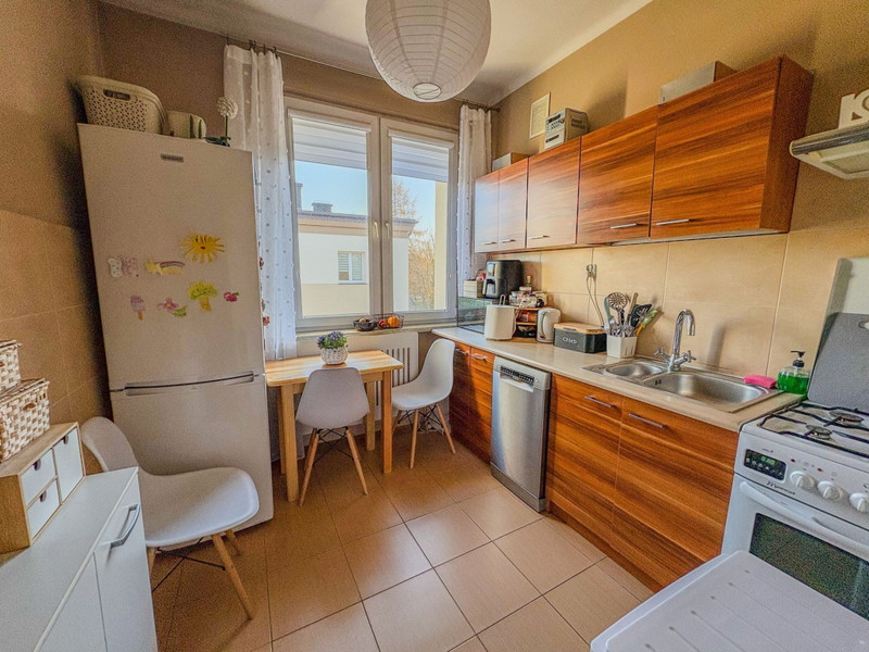 Mieszkanie jest pełne naturalnego światła dzięki oknom wychodzącym na dwie strony świata (południe i wschód). Znajduje się na 2. (ostatnim) piętrze, co zapewnia ciszę i brak sąsiadów nad głową. Układ idealny zarówno dla rodziny, jak i jako pewna inwestycja pod wynajem, ponieważ są dwa niezależne pokoje. Do mieszkania przynależy piwnica (w cenie mieszkania).