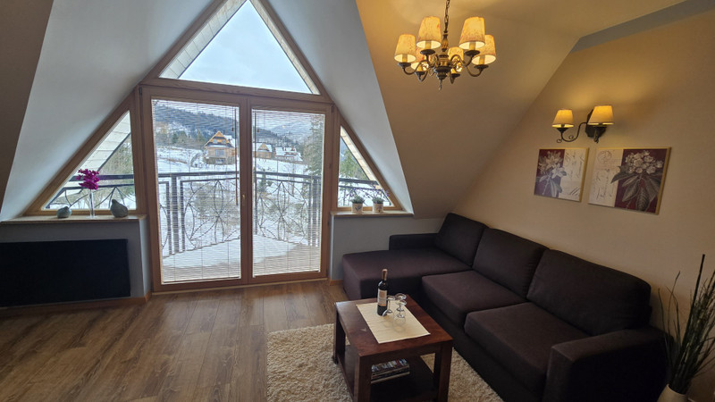 • Panorama: Z balkonu rozpościera się niczym niezakłócony widok na Giewont oraz Kasprowy Wierch. Poranna kawa z takim widokiem to bezcenny atut tej nieruchomości.