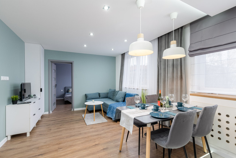 Duże mieszkanie podzielone na dwa mniejsze wykończone w wysokim standardzie w pełni funkcjonalne mieszkania.