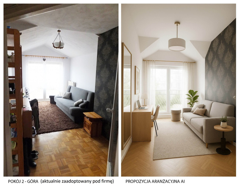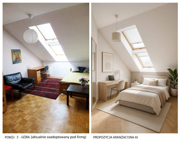 · Góra zaadoptowana aktualnie pod firmę (stan widoczny na zdjęciach 2 pokojów uległ zmianie)