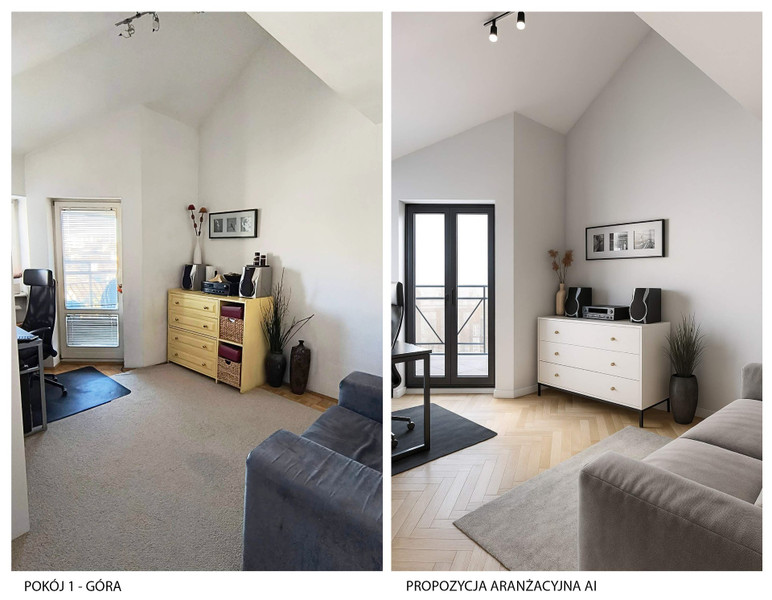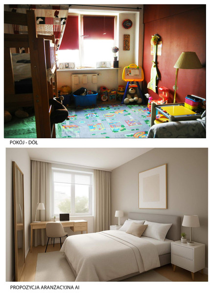 • Zdjęcia częściowo wykonano w technologii AI, która przedstawia potencjał aranżacyjny mieszkania