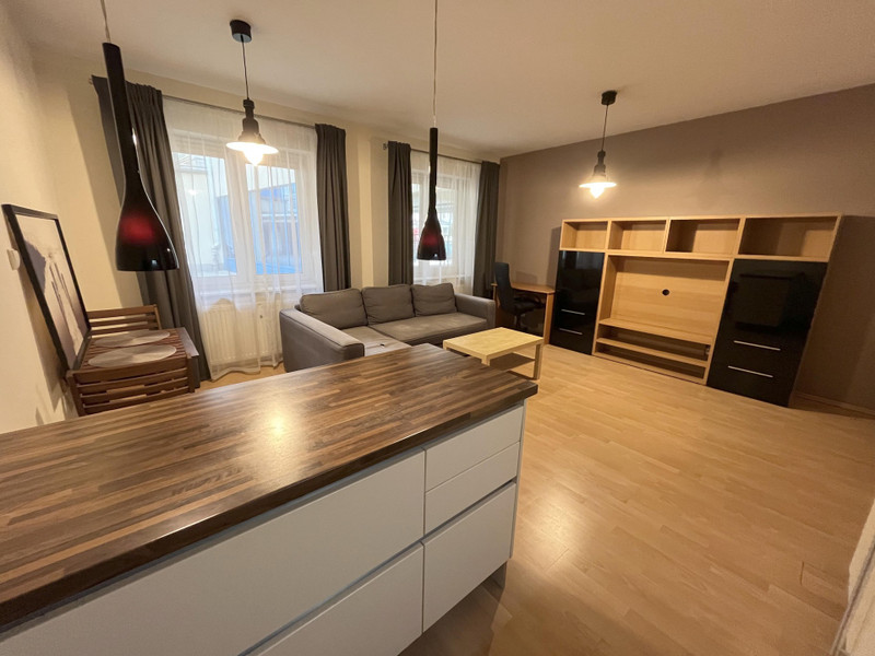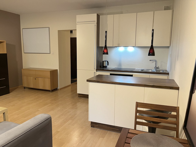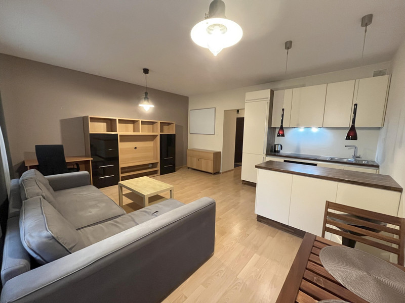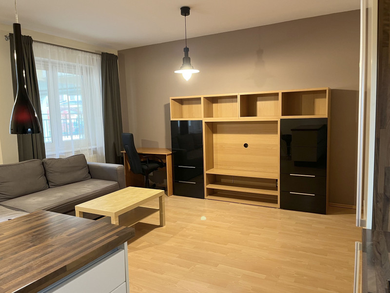 OPIS: Mieszkanie jest zadbane, w pełni wyposażone i gotowe do wprowadzenia. Składa się z przestronnego pokoju dziennego z aneksem kuchennym, funkcjonalnego przedpokoju i dużej łazienki. Sufit na wysokości ok 2,7m (poza łazienką, gdzie został obniżony).