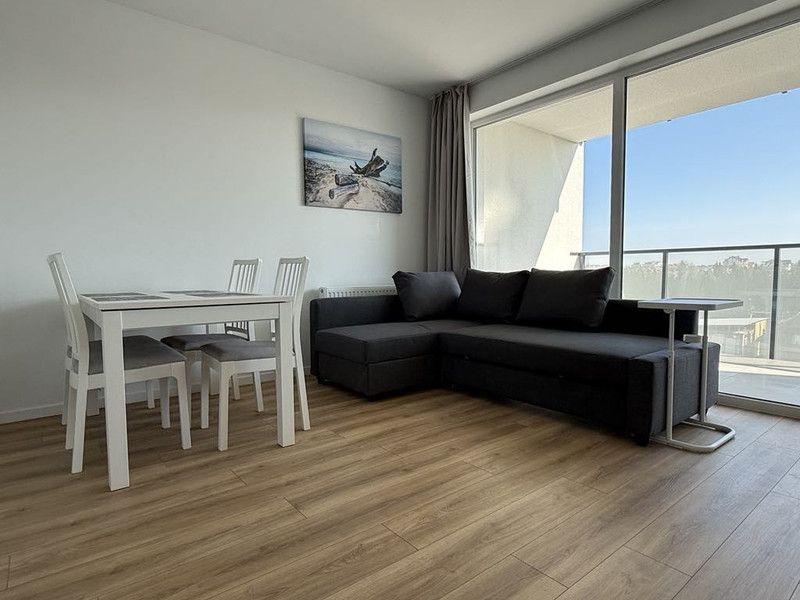 Na sprzedaż zupełnie nowy, nieużywany apartament 40,5 m² w Ustroniu Morskim – ok. 400 m od plaży. Cena 599 000 zł brutto obejmuje mieszkanie w pełni wykończone i wyposażone oraz miejsce w hali garażowej 12,5 m². Kupujący nie płaci PCC (oszczędność ok. 11 990 zł).