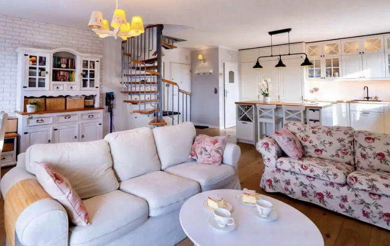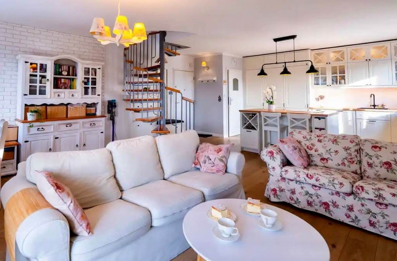 Dwupoziomowy apartament w stylu angielskim o powierzchni 90,52 m², położony przy ul. Zegadłowicza w Wadowicach z dostępem do prywatnego basenu dla mieszkańców.