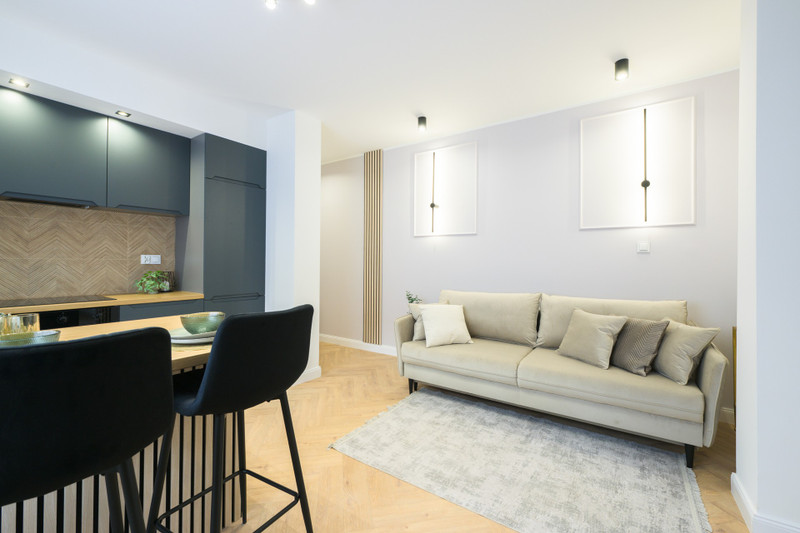 Mieszkanie po remoncie, całość tworzy spójny i elegancki charakter.