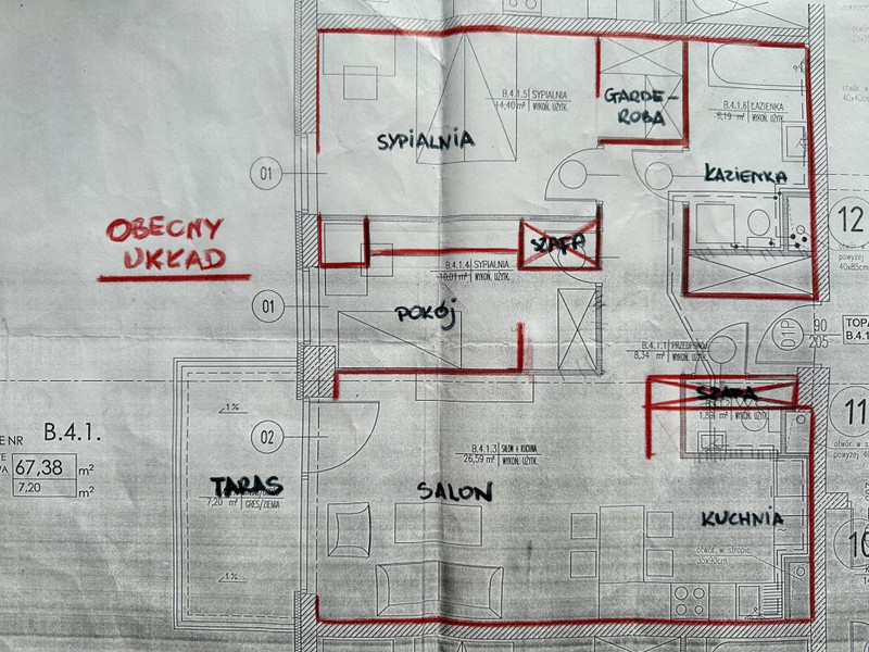 Mieszkanie zostało przebudowane, możliwy powrót do pierwotnej wersji z dwoma sypialniami.