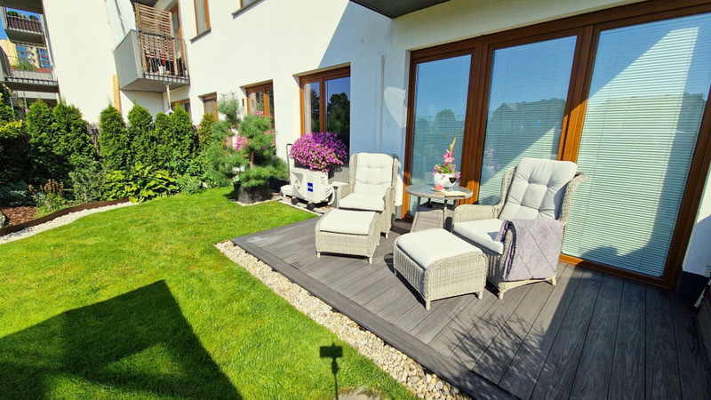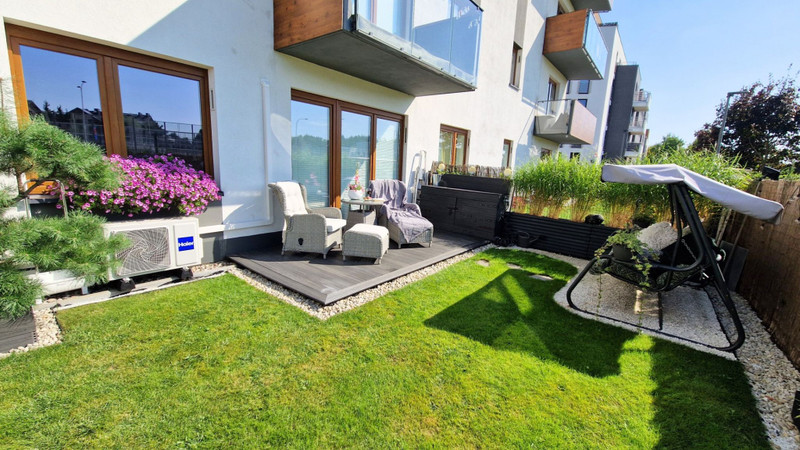 Na sprzedaż 3-pokojowe mieszkanie o powierzchni 53 m² z dużym, zadbanym ogródkiem 47 m², położone na parterze na osiedlu Bemowo Residence w Warszawa (dzielnica Bemowo).