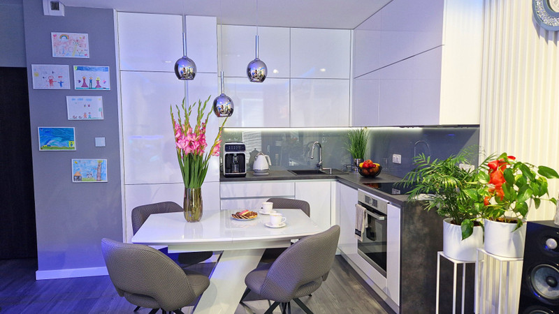 Mieszkanie było wykańczane pod właściciela, nie pod wynajem — każdy element został przemyślany, a przestrzeń maksymalnie wykorzystana dzięki zabudowom stolarskim. Lokal jest w pełni gotowy do zamieszkania, bez konieczności dodatkowych inwestycji.