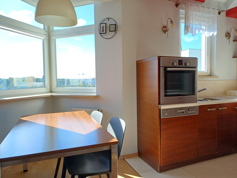 Mieszkanie bardzo funkcjonalne i wygodne, wyposażone i gotowe do zamieszkania praktycznie od zaraz. Widna kuchnia z meblami i niezbędnym wyposażeniem AGD. Łazienka z dużym prysznicem, umywalką, WC oraz stałą zabudową (przydatne szafki, szafeczki). Tuż przy wejściu do mieszkania przydatna garderoba. Okna PCV w bardzo dobrym stanie.