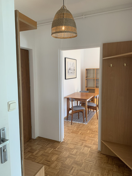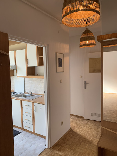 A very nice apartment in Tarchomin, at Odkryta 29d, with 2 rooms (living room and bedroom) and a large balcony, plus a separate kitchen, bathroom, and toilet. Second floor, completely renovated and furnished, ready to move in. It has an elevator, very bright and quiet, faces south-west, and also includes a storage unit. Guarded, 4-story building. The apartment is located by a forest, near the Vistula River. Quiet and peaceful neighborhood with excellent transport links (there's a bus stop at the entrance to the neighborhood and a tram stop for the metro Młociny is about 300 meters away). Nearby There are shops, a school, a kindergarten, and a clinic. Administrative fees are approximately 800 PLN (including advance payments for utilities).