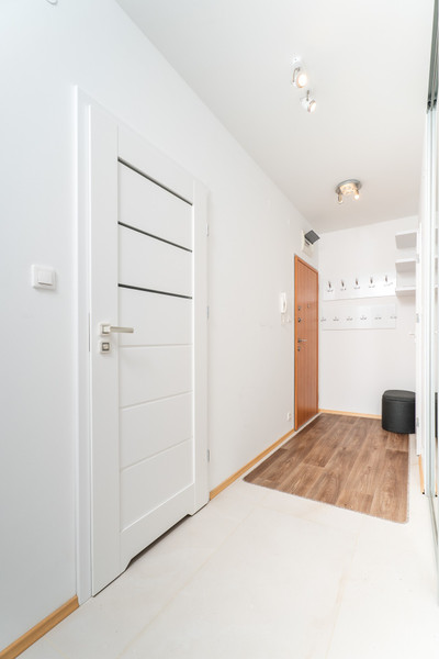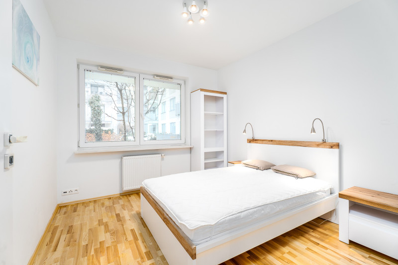 Wykończenie na wysoki standard. W holu, łazience i kuchni podłoga z gresu, w sypialni i salonie drewniane panele jesionowe. Pod częścią podłogi gresowej jest ułożone ogrzewanie podłogowe (wodne). Układ mieszkania jest starannie przemyślany, z dbałością o szczegóły - tak, aby było maksymalnie wygodne i praktyczne. Mieszkanie ciche, okna wychodzą na wewnętrzne patio z zielenią i ławkami, wszystkie meble i sprzęty są nowe. Możliwość podłączenia szybkiego internetu przez światłowód u licznych operatorów.