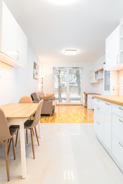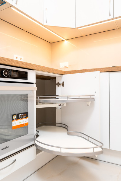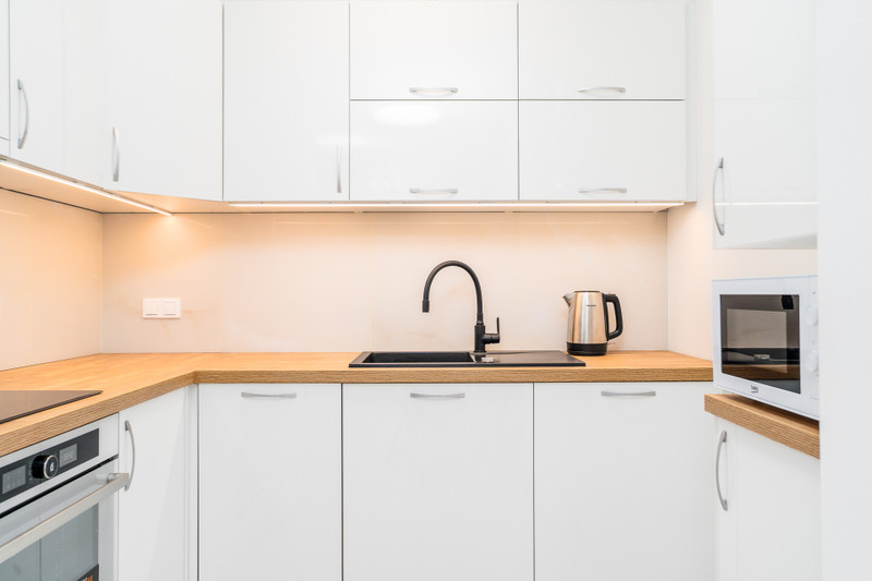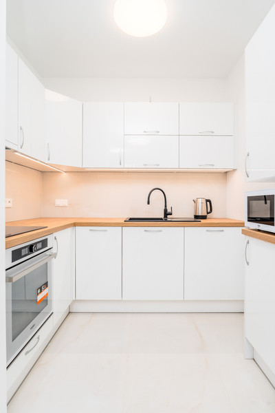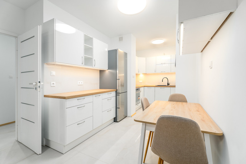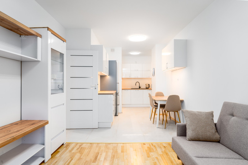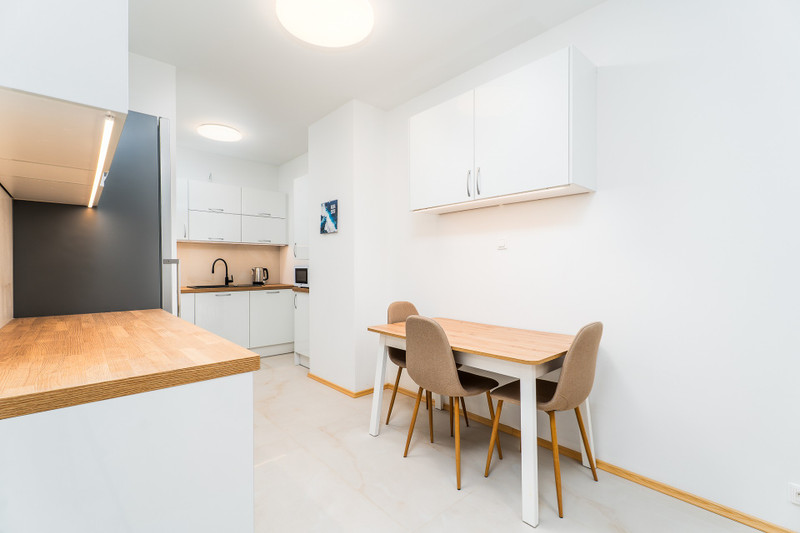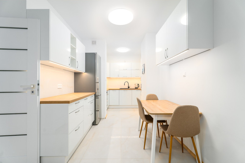 - kuchnia w pełni wyposażona, płyta indukcyjna, szafki i szuflady z cichym domykiem, oświetlenie podszafkowe, organizacja segregacji śmieci;