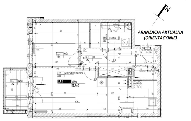 Mieszkanie o powierzchni 49,7 m2 składa się z: