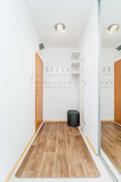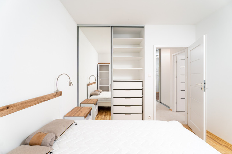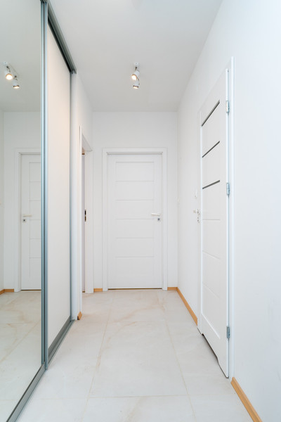 - w holu i w sypialni pojemne szafy z drzwiami przesuwnymi;