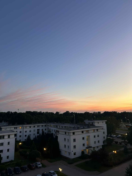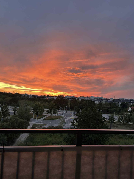 Mieszkanie jest narożne – graniczymy z sąsiadem tylko z jednej strony, co zapewnia komfort i ciszę. Słońce towarzyszy nam praktycznie przez cały dzień, a pod wieczór możemy podziwiać przepiękne zachody słońca bezpośrednio z balkonu. Widok jest otwarty – duża przestrzeń nieograniczona żadnymi budynkami.