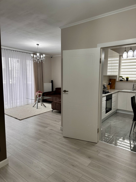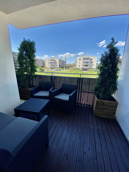 Całe mieszkanie jest dwustronne, bardzo dobrze doświetlone. Mieszkanie składa się z wydzielonej kuchni, salonu z wyjściem na taras, dużego holu, łazienki, sypialni z wyjściem na umeblowany taras, jeszcze jednego pokoju, który może być zarówno gabinetem jak i pokojem dziecięcym, i garderoby.
