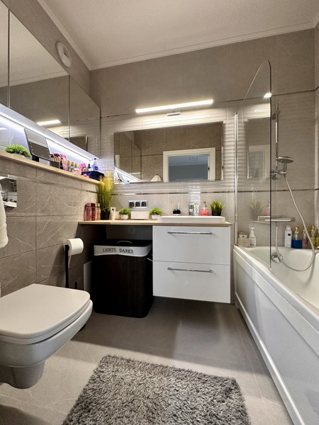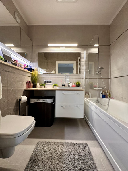 ŁAZIENKA składa się z wanny z funkcją prysznica, pralki, umywalki, zabudowanego wc.