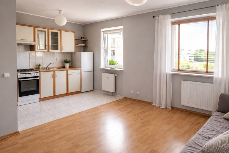 Jednopokojowe mieszkanie 33,5 m2. Przedpokój, Wszechstronna łazienka, aneks kuchenny i pokój. Okna na południowy zachód. Mieszkanie bardzo jasne i ciepłe. Latem prawie cały dzień słońce, Na zamkniętym osiedlu. Lidl 300 metrów, pętla autobusowa 500 m, wały wiślane 400 m. Żabka i przychodnia 150 m.