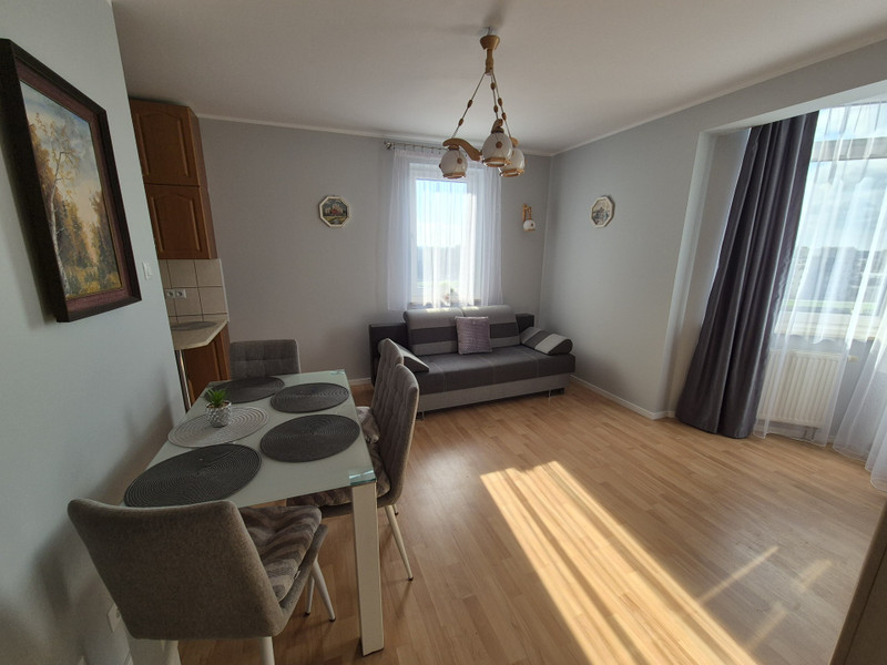Bez prowizji dla kupującego gotowe do zamieszkania, 2 pokojowe z balkonem i komórką lokatorską w cenie mieszkania (mieszkanie 37,70m2, komórka 2,10 m2) po remoncie przeprowadzonym w styczniu tego roku. Miejsce garażowe na jedno duże auto - zakup obligatoryjny. Osiedle zamknięte, z ochroną i monitoringiem. Dodatkowym atutem jest basen na terenie osiedla dla ich mieszkańców. Mieszkanie słoneczne, ciepłe, ciche i sprzedawane z wyposażeniem widocznym na zdjęciach, także, można wprowadzić się z walizką do gotowego mieszkania. Balkon duży z miejscem na stolik z fotelami - miejsce do wypoczynku. Okna od strony południowo- zachodniej. Odświeżone gładzie i tynki oraz wszystkie pomieszczenia odmalowane farbą zmywalną, wymienione drzwi wewnętrzne, okna plastikowe 2 szybowe z parapetami z konglomeratu, z wymienionymi uszczelkami, klamkami, szczelne i wygłuszające hałas z zewnątrz. Wymienione wszystkie gniazda elektryczne. Wspólnota w tym roku wymieniła w budynku także wszystkie wodne piony. Czynsz dla wspólnoty obecnie wynosi 567 zł.