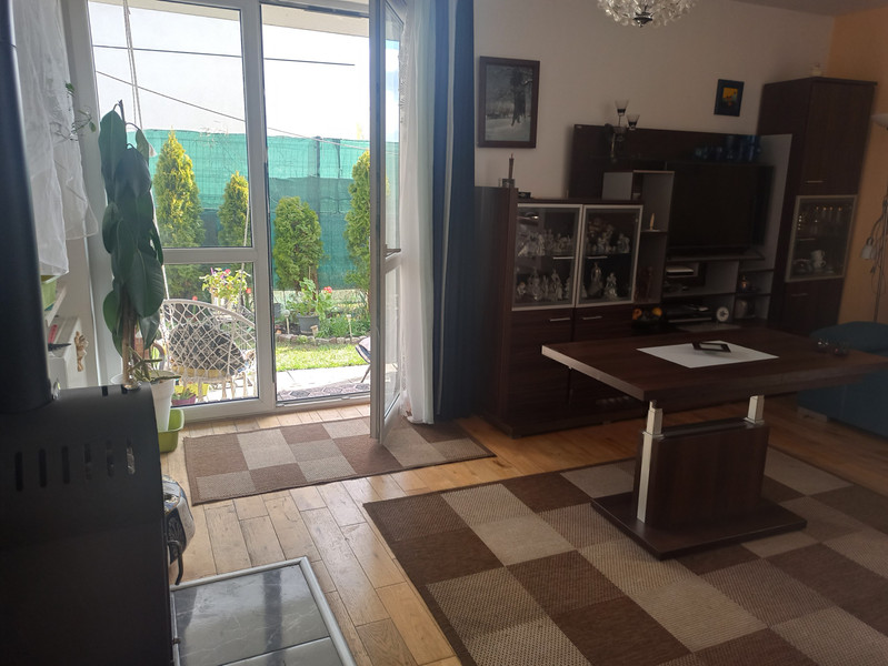 Oferuję mieszkanie z własnym miejscem parkingowym. Umeblowane i wyposażone w sprzęt AGD. Z otwartą kuchnią. W salonie zainstalowano kominek, który jest dużym atutem w zimie . 10 metrowy taras przechodzi w zagospodarowany ogród, z drzewami i krzewami owocowymi, oraz ozdobnymi.